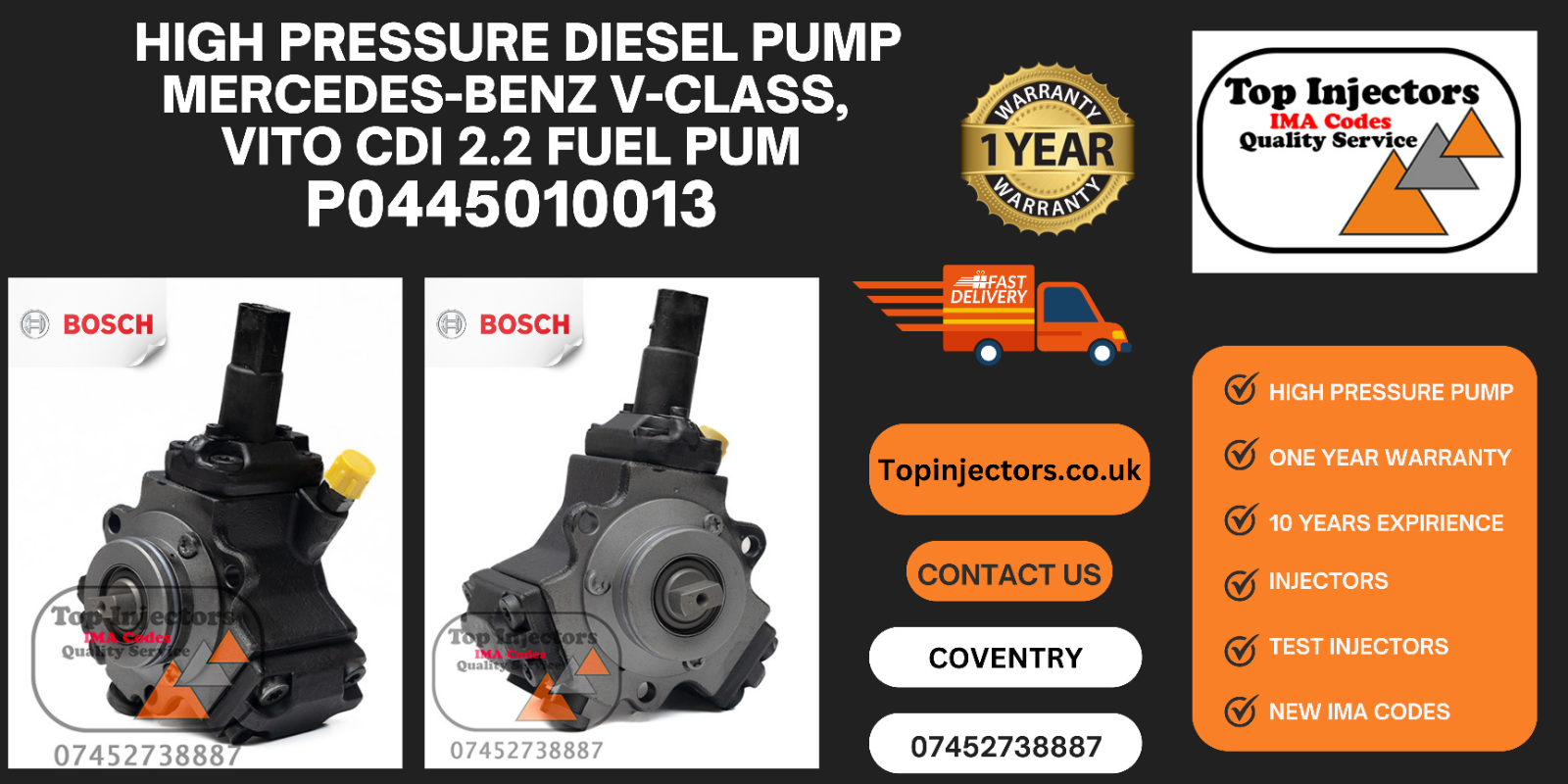 We sell reconditioned high pressure diesel pump / injectors with 12 months warranty with no mileage limit.