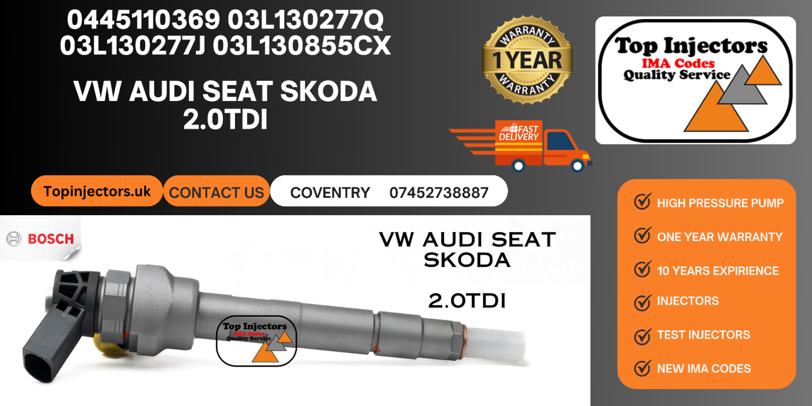 We sell reconditioned high pressure diesel pump / injectors with 12 months warranty with no mileage limit.